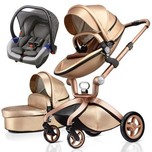 Hot Mom - Elegance F022 - 3 in 1 Baby Stroller - Gold with Grey Car Seat